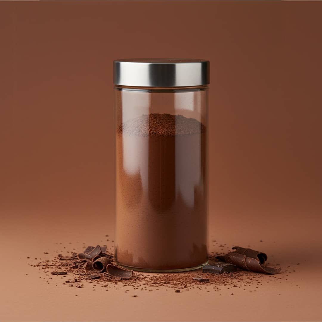 Cacao amaro in polvere, dal sapore intenso e senza aggiunta di zucchero.