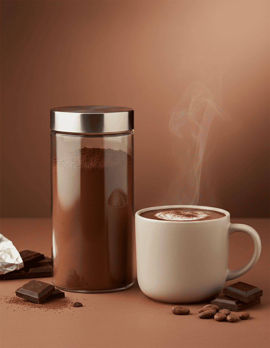 Cacao zuccherato in polvere con circa il 45 % di cacao, ideale per rendere più dolce e cremoso il sapore del cioccolato.