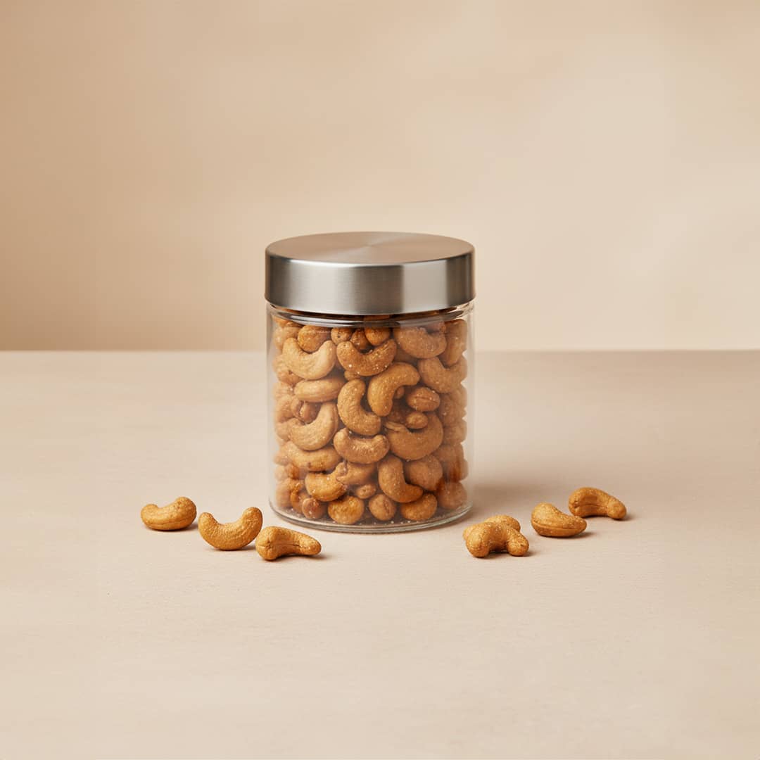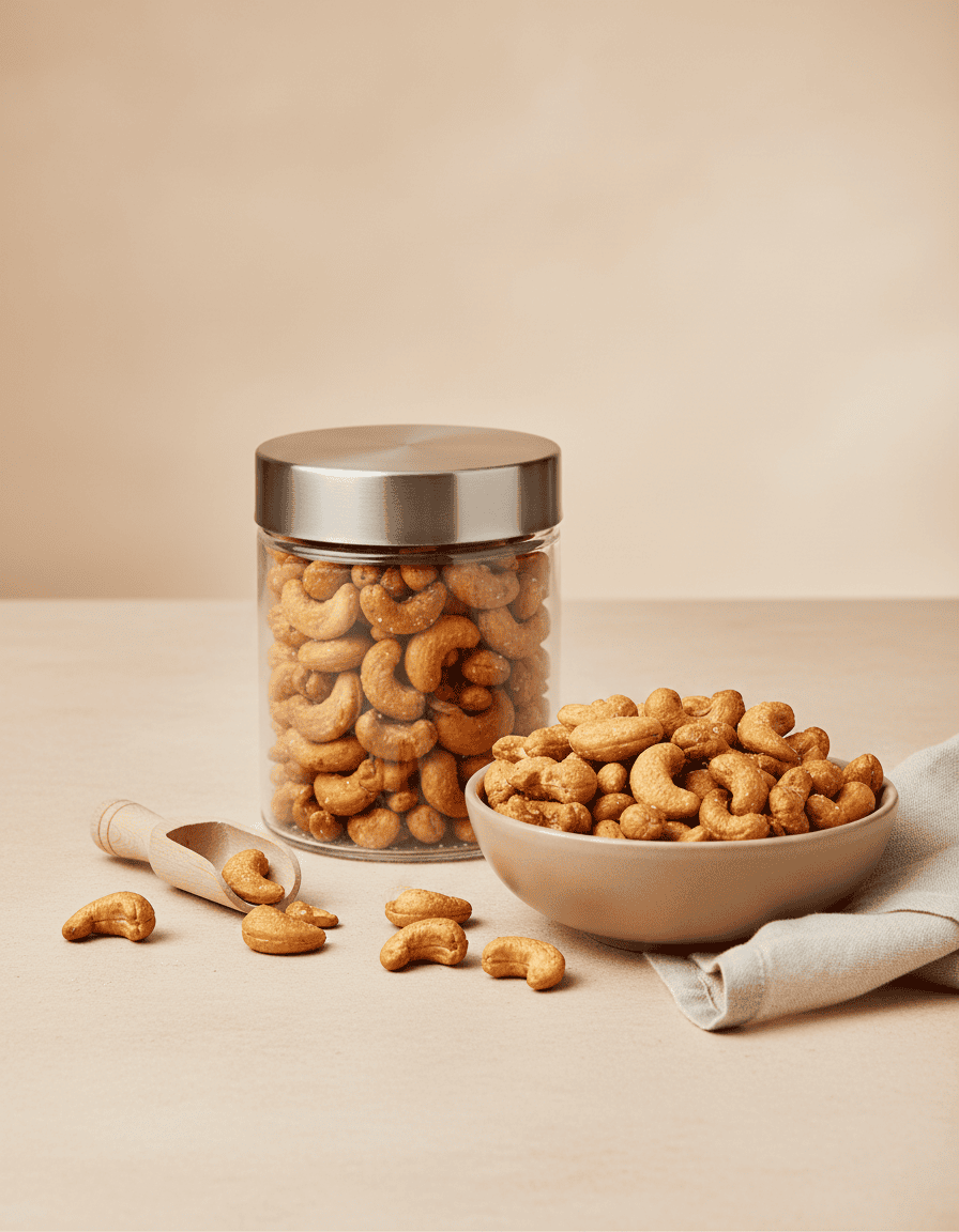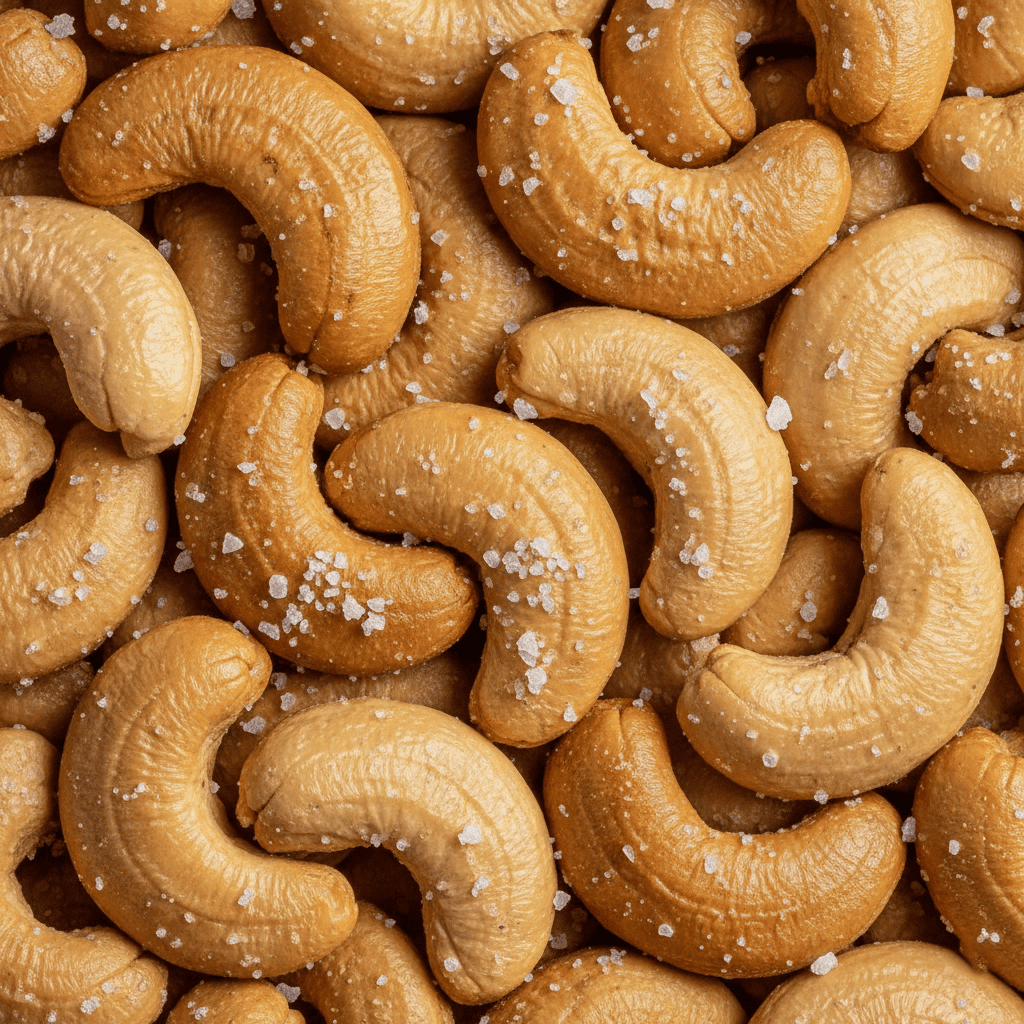 Anacardi tostati e salati, snack dalla consistenza morbida e sapore pieno, ideali per aperitivi e morsi gustosi.