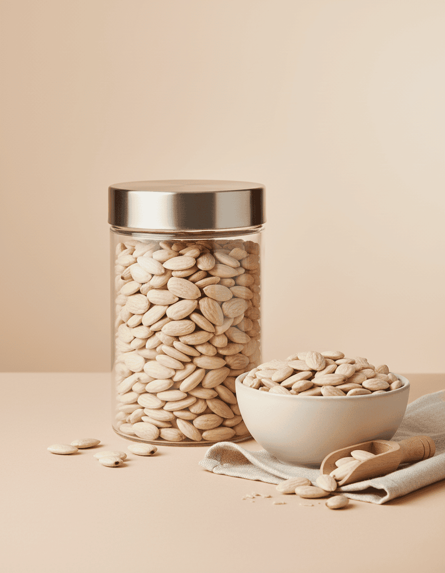 Mandorle pelate integre, pronte all’uso per ricette dolci e salate, creme, snack o decorazioni.