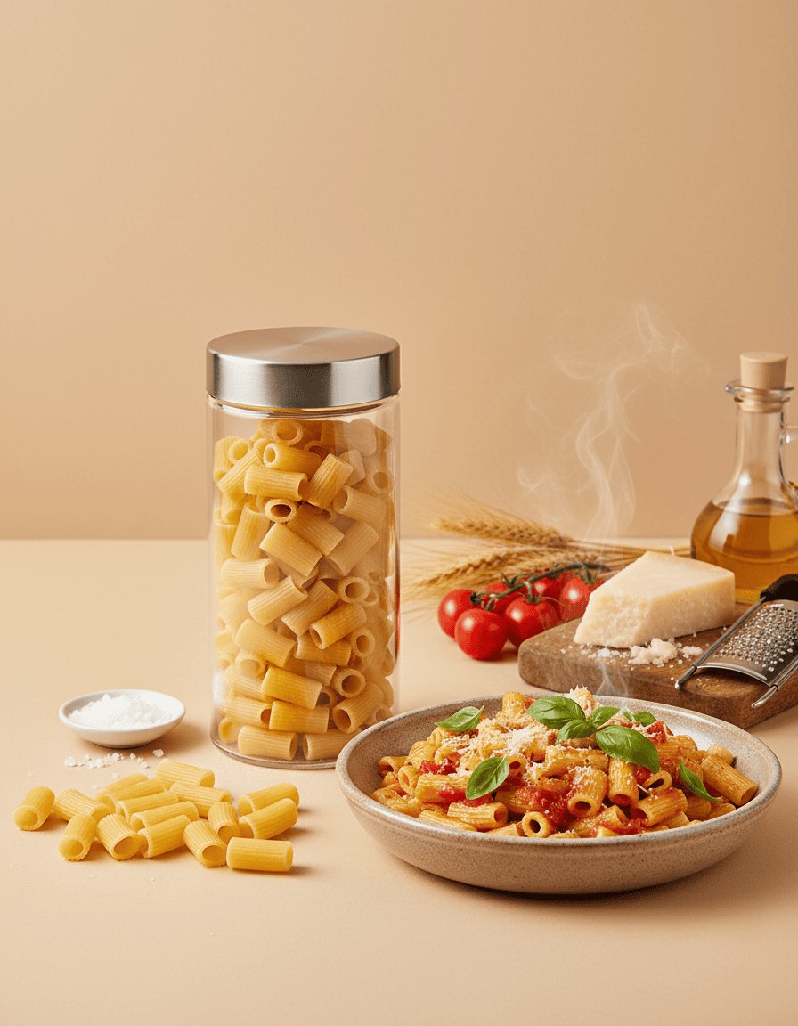 Mezze maniche Barilla, formato classico corto liscio, ideale per raccogliere sughi densi e piatti tradizionali.
