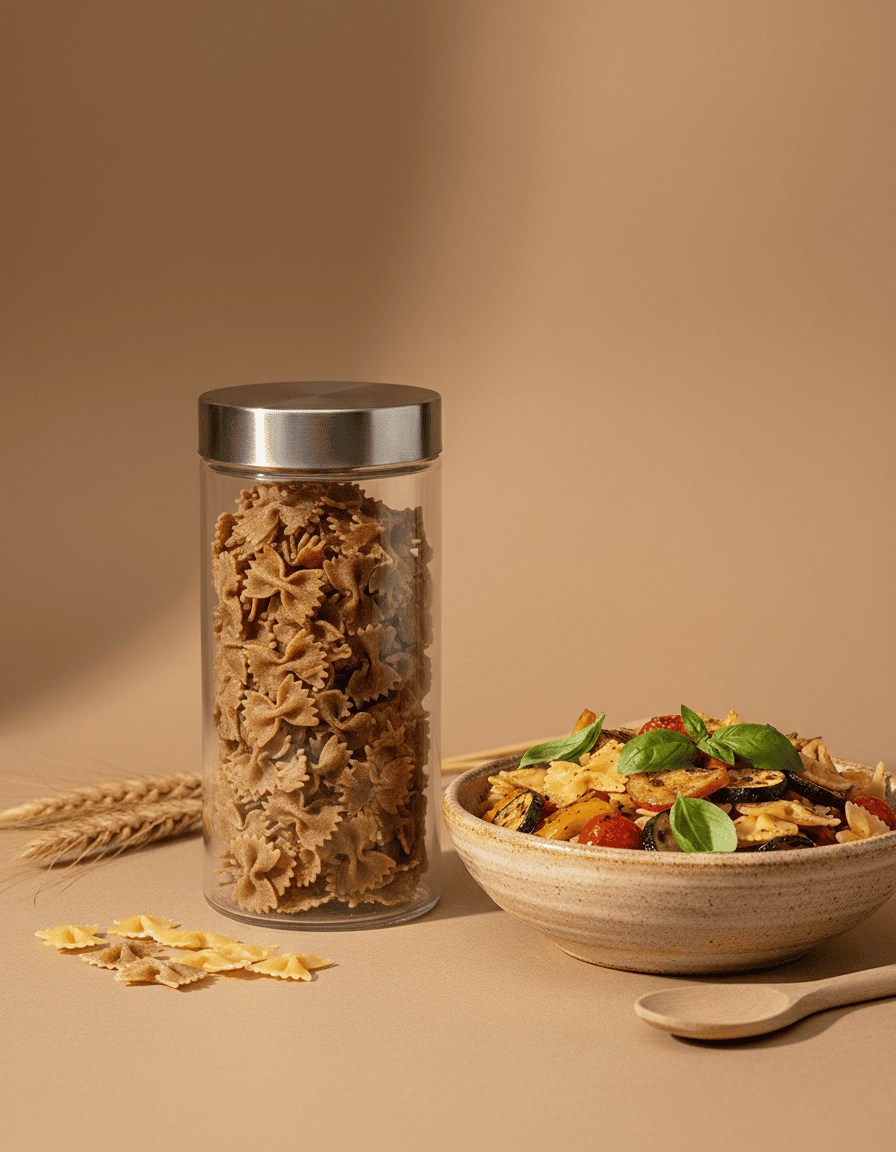 Farfalle integrali di grano duro, dal profilo rustico e con ottima tenuta di cottura.
