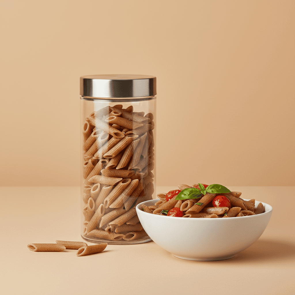 Penne rigate integrali De Cecco n.41, pasta di semola integrale con fibra e gusto rustico, ideale con sughi saporiti o condimenti leggeri.