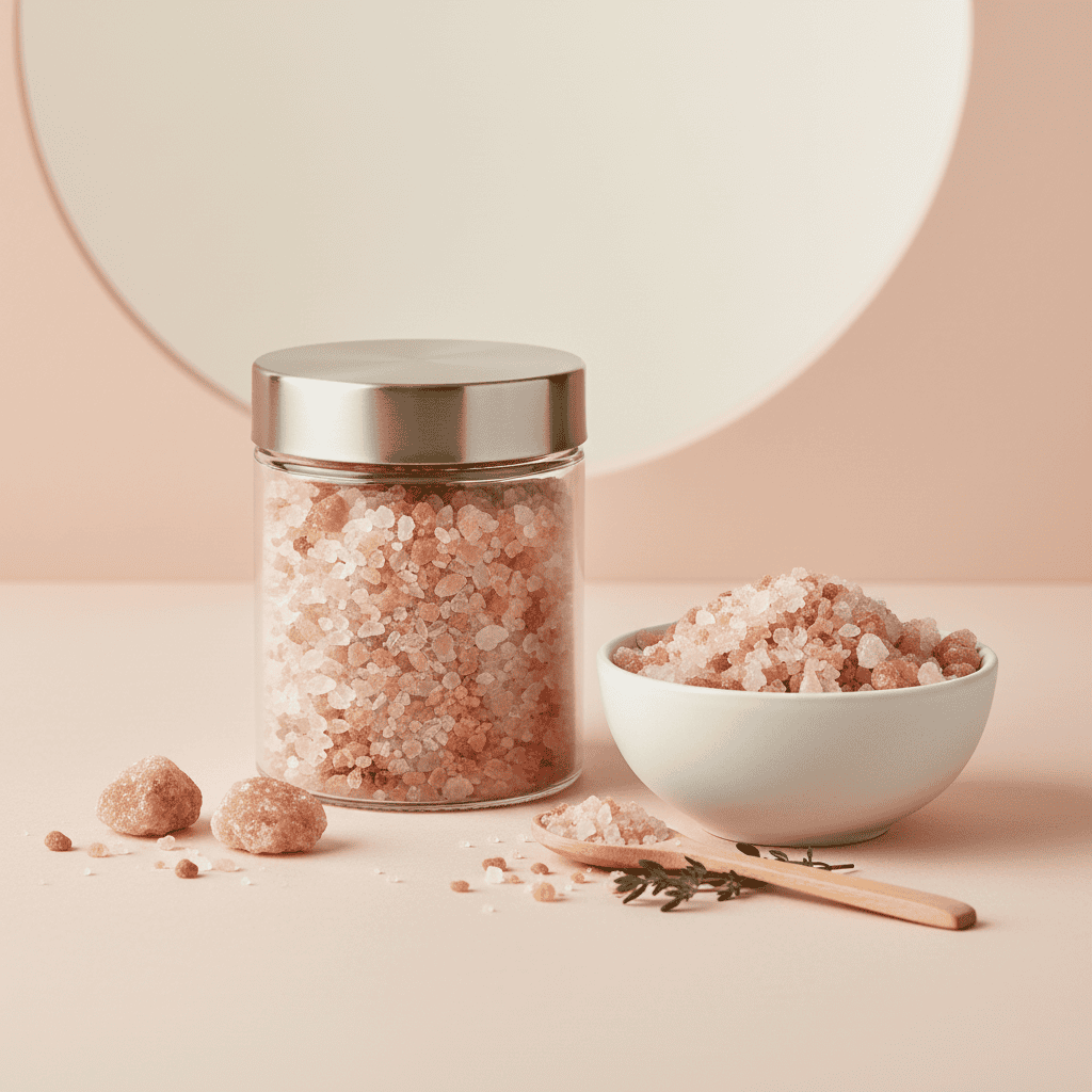 Sale rosa dell’Himalaya integrale in cristalli grossi, non raffinato, dal sapore deciso e dalla caratteristica colorazione rosata, ideale per grigliate, marinate e piatti gourmet.