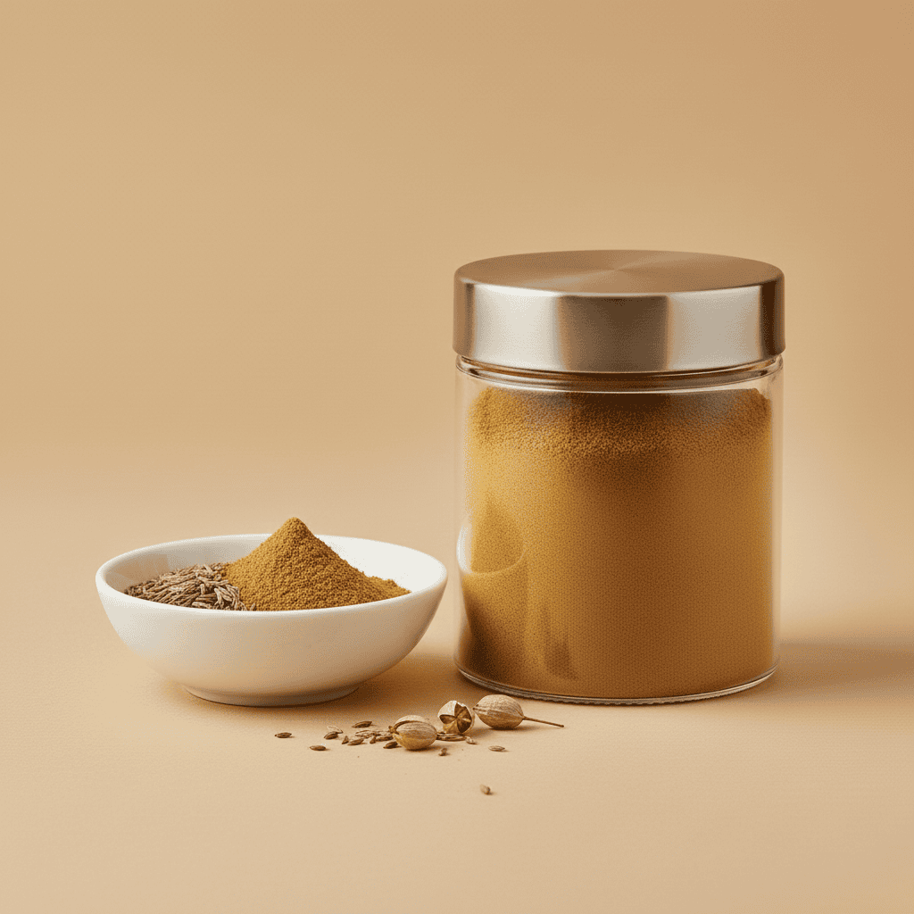 Cumino macinato, spezia aromatica dal gusto caldo e leggermente pungente, molto usato in cucina mediterranea, mediorientale e latino-americana.
